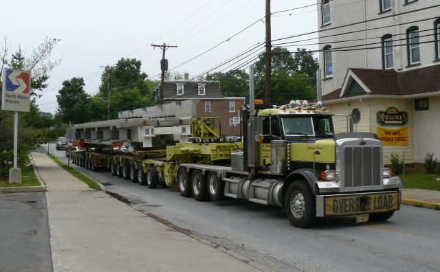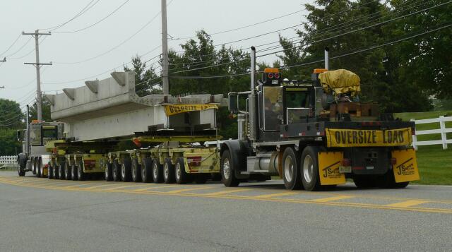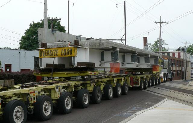 | The reconstruction of the Market-Frankford El in West Philadelphia has been ongoing for years, and they are finally nearing completion. The pre-fabricated portions of the project are built in Falls Township near Morrisville PA and trucked to their destination. Pictures from a portion of one such run back in 2006 can be found here. |