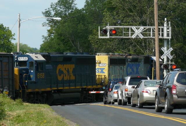| then a second time (a little farther down the line, B738 will cross the third time North Wales Road, but this time the trains runs under the road). B738 surprised many late afternoon motorists on a line that hardly has any daytime trains. |
