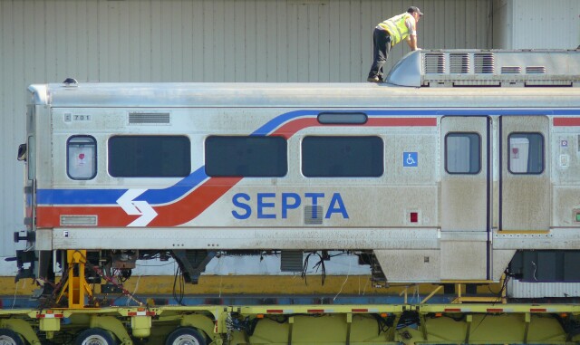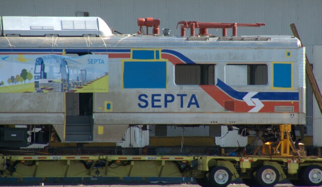| Wednesday morning and it is ready to move, as soon as a banner is hung on the side to proclaim the arrival of first new SEPTA Silverliner in over thirty years. |