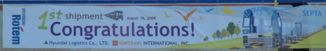 | Why, it is the SEPTA Silverliner V mockup, of course. Newly arrived aboard the Rickmers Hamburg, it was unloaded the night before, completing its more than a month journey from Korea. |