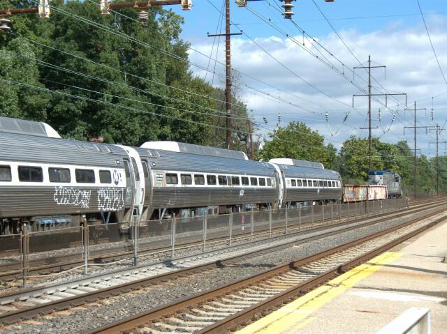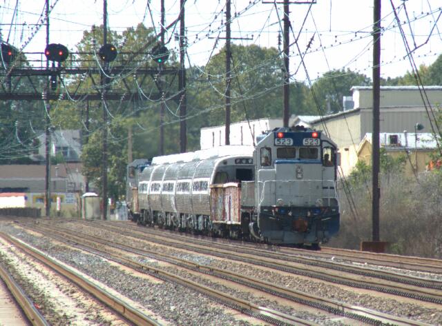 | Amtrak shop move approaching Norwood Station south of Philadelphia. |