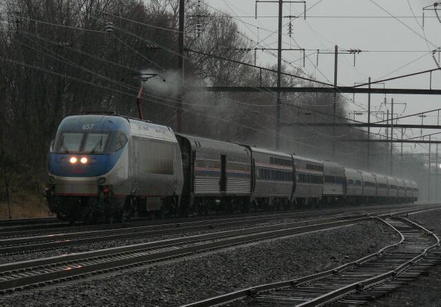 | Passing at 12:15, Amtrak HHP-8 AMTK 657 pulls Train 91 the Silver Star |