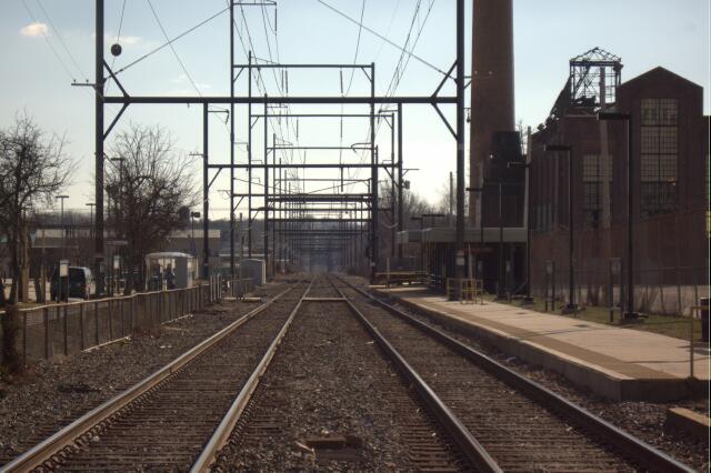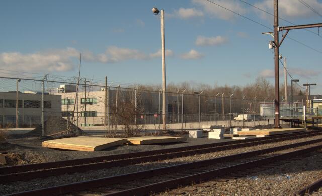 | The current Track 1 platform, used primarily for inbound trains, is just south of Butler Pike and can be reached from the parking lot on the east side only by crossing over the tracks. |