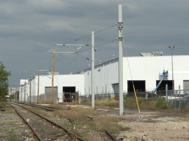 | With the arrival yesterday of the first production Silverliner V shells, the Hyundai-Rotem plant in South Philadelphia will finally have something to do. Earlier this month workers were still putting finishing touches to the exterior, while the electrified test track carved out of the CSX trackage between Oregon Avenue and Wolf Street is wired up and ready. After the renovations, the facility looks a lot better than it did in December of last year, the rest of the area not so much. |