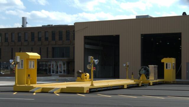 | Looking south from Wolf Street at the test track and adjacent test shop. |