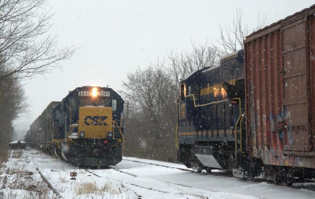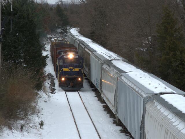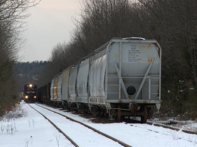 | After grabbing a quick lunch in Telford, 3153 heads north toward Sellersville, passing some of the many cars now in storage between Telford and Quakertown. |