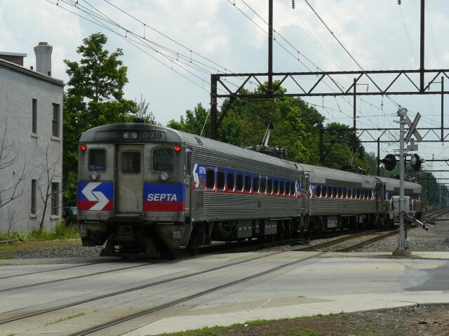 | Later in the day Silverliner III 239 on the tail end of a train heading for Center City |