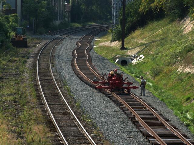 Update on the CSX Trenton Line Double Stack Clearance Project. Previous pages can be found here, here, here and here. The CSX Track Department is in the process of laying a temporary track from CP Nice to CP River to allow Trenton Line trains to run while the new lower track is installed. |