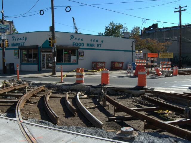 | At the intersection of Girard and Frankford Avenues, the new turnouts are being laid. |