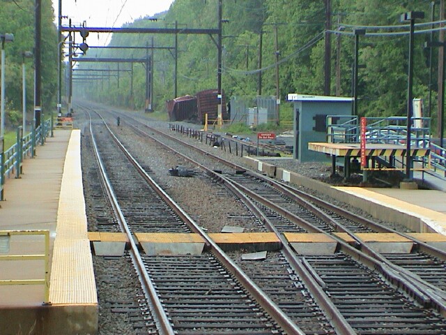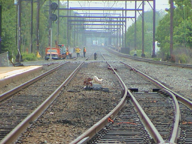 | The three centerbeam wood cars were moved down to the PECO siding just south of CP Berry, about 2 miles from the site, and removed earlier this month. As of last week, the two box cars that bore the brunt of the accident were still just south of the station, awaiting disposal. SEPTA has started work on the new switch just north of the station, and will continue the repairs to the catenary supports and wires in the coming weeks. |
