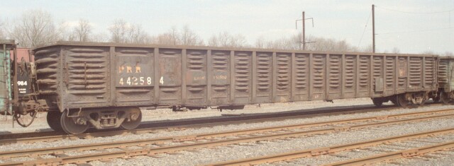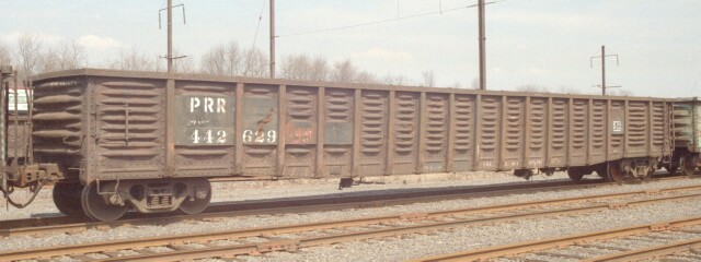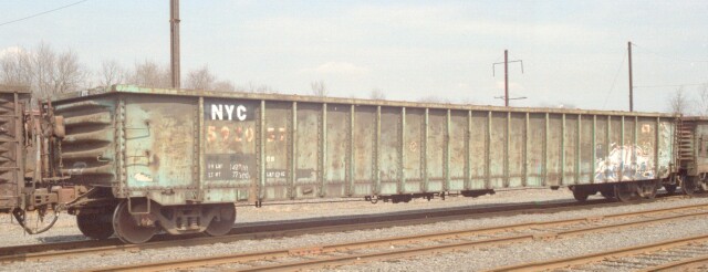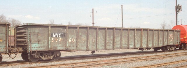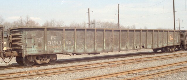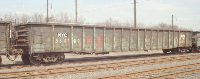 Most pictures you see featuring railroad subjects are of the motive power on the head end, and the rest of the train is just background. But that "background" often makes up 95% or more of the train consist, and a true historical perspective would be skewed without preserving a record of those cars. Fortunately there are many among us who like to capture as much of the surrounding history as possible, and the freight cars are getting their due. Certain geographic areas feature specific types of cars. When you say Morrisville PA, you really mean the US Steel Fairless Works. A pale ghost of its former self during the PRR and PC days, even into the Conrail era, hordes of cars associated with steel could be found there. The most common of those would be the lowly gondola. April 1999 was a transition period, as NS and CSX were in the process of cutting the baby (Conrail) in half, or more accurately, 58-42. During the period preceding the split, CSX was having the Conrail cars destined for it restenciled NYC, while the NS cars retained their Conrail era markings. Here we have cars from two previous transition eras as well, as PRR, PC, CR and NYC gondolas awaiting assignment sit in the Morrisville B yard (C yard was intermodal and A yard had been long abandoned but in 2003 it will now house an NJT maintenance facility). |