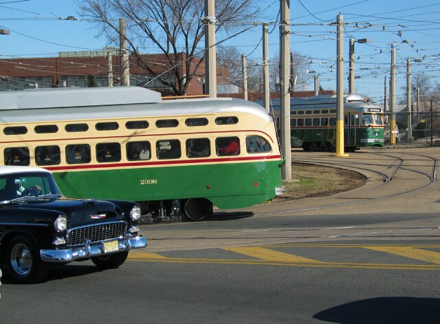| The Wilmington Chapter of the NRHS sponsored their annual Super Saturday trolley trip using two of the new PCC II's, numbers 2336 and 2337. Pictured here at the start of the trip, having just left the Elmwood Avenue Depot, is 2336. |