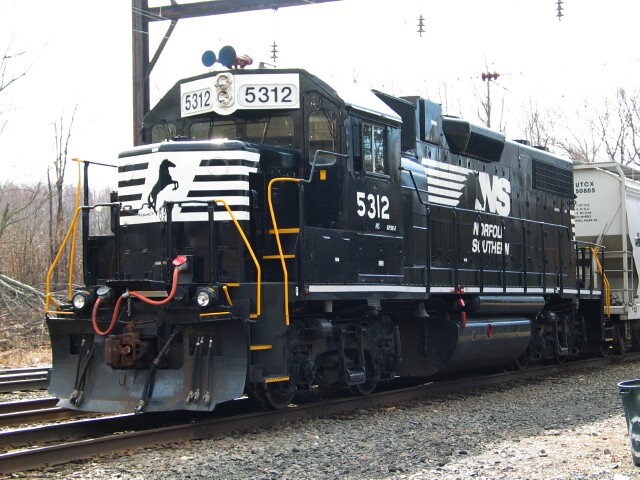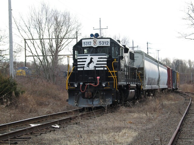 | NS 5312 waited on the siding, pictured here as Q172 passes on the Trenton Line to the left. |