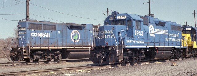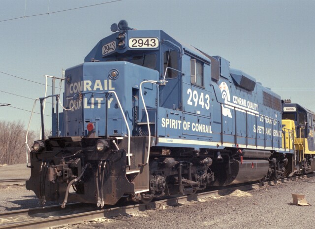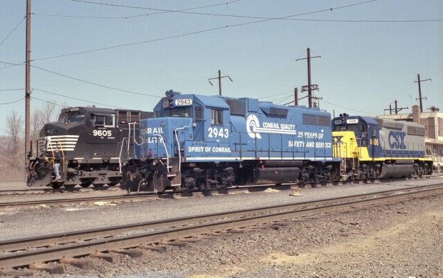 | The new face of Northeast Railroading at the dawn of the new century. NS/PRR 2943 with CSX GP40-2 4406 (former CR 3295) and one of the ubiquitous NS D 9-40CW's, 9605. |