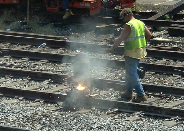 During the weekend of June 17 2006, SEPTA continued its cab-signaling march toward Lansdale with a reworking of Carmel Interlocking in Glenside PA. The pictures and the descriptions were provided by Matthew Mitchell of the Delaware Valley Association of Rail Passengers. Part One can be found here. After igniting the thermite mixture, it is just a matter of time..... |