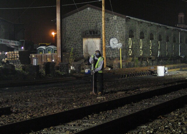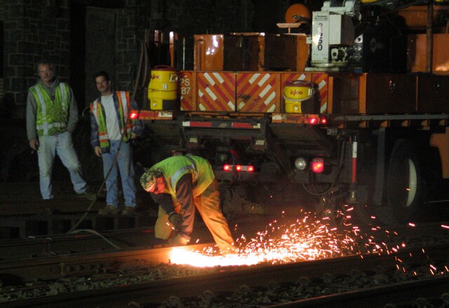 | Shortly after the last train at about 12:30 AM, the cutting had begun. |