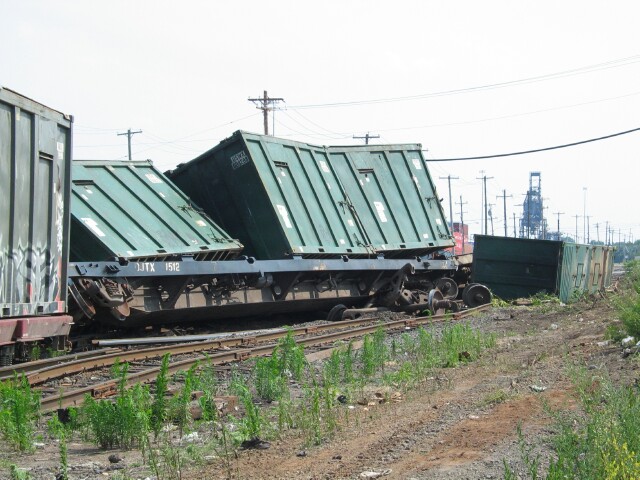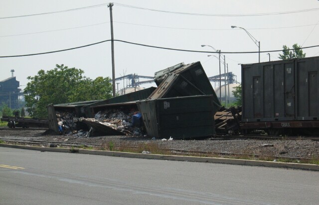 | CSX yard job Y190 was working the east end of Greenwich Yard near the Walt Whitman Bridge on July 15 2007 when it derailed several trash cars just outside the entrance to the Canadian Pacific Yard along Columbus Boulevard. Coincidentally, this would be the first of two "train wrecks" in South Philly, as later the same night, just ten blocks away, the Phillies lost the 10,000 th game in franchise history. |