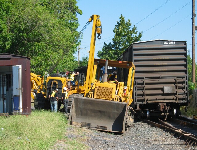 | While NS was taking away the other cars, Terra was working on the derailed box car and engine. |