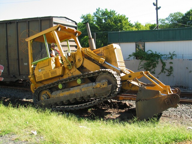 | Using the small bulldozer to pull while the sidewinder lifted, they coaxed it back on the rails. |