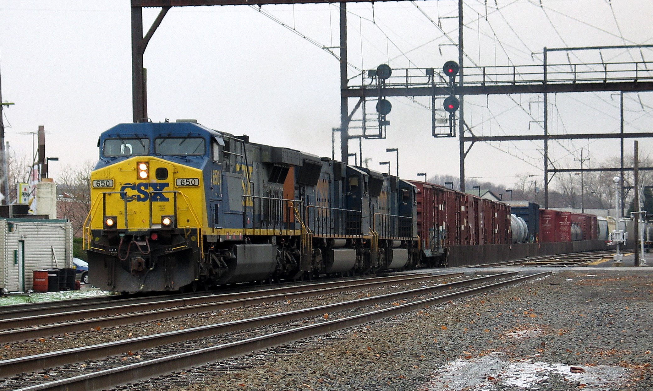 | Later in the afternoon, Q438 came through Langhorne with CW60AC 650 leading a couple EMD's. |