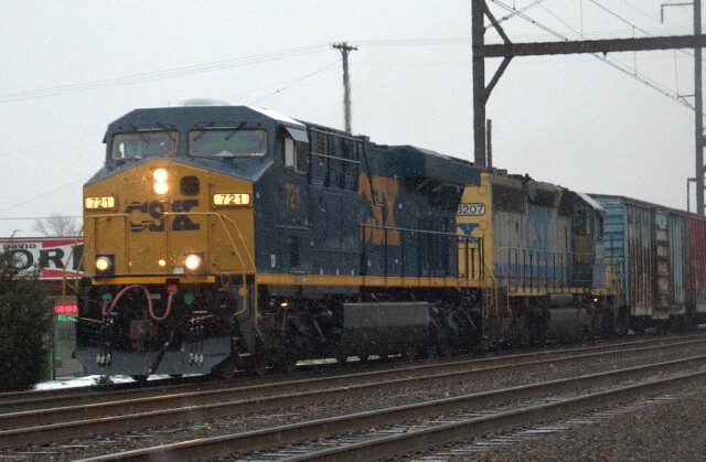 | Friday's trains featured low numbered GE's passing through the area. Brand new CSX ES44AC 722 was paired up with sister 713 on Q417 as it approaches Neshaminy Falls. |