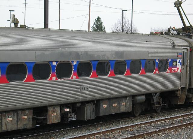 | To inspect the catenary around the system, SEPTA regularly runs what it calls "the camera train", and the heart of the camera train is Budd Silverliner II 266. It is equipped with a pair of roof mounted cameras, one mounted in the middle of the car and one on the B end. |