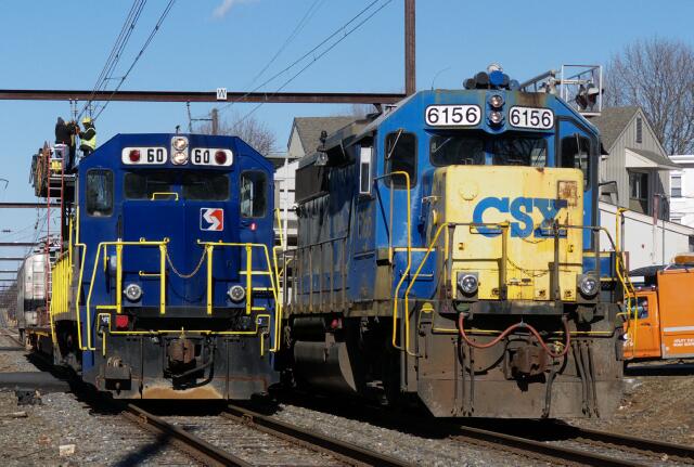 | Trailing was CSX GP40-2 6156. From this side by side view, you can see why many people presume that the RL-1 is a EMD product, but despite the similarities, we are assured that both units were in fact built from scratch by Republic Locomotive. |