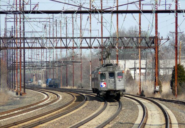 | With CETC having signal problems on Track 1, they ran SEPTA local 733 up Track 2 from Holmes to Grundy, with St. Louis Car Company's former Pennsylvania Silverliner III 226 on the point. Built for high speed service between Philadelphia and Harrisburg, 226 has the engineer's position on the left side, as opposed to ... |