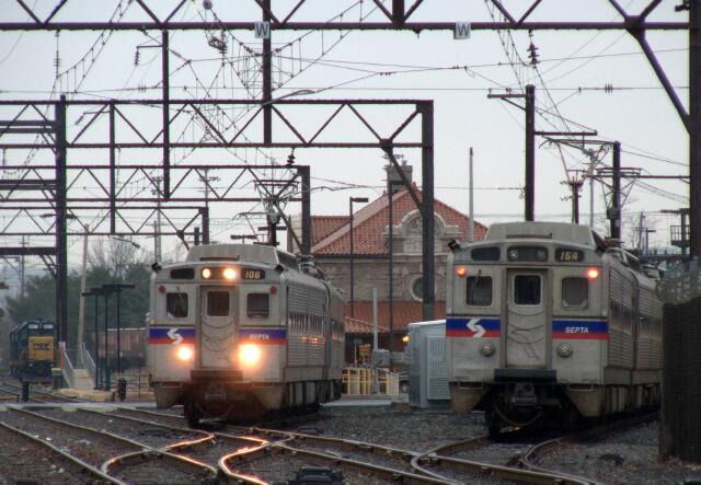 One of the main reasons for the Dale Interlocking project was to redesign the plant to allow multiple movements through the interlocking. Because of the ongoing track and wire work on both sides of the R5 Line (wire work on SEPTA Main, track work on Keystone Corridor), the half-hourly service that would have taken full advantage of this has not yet resumed. But there are a few instances in the current schedule where trains are arriving and departing Lansdale at the same time and it gives us a glimpse of the future. |