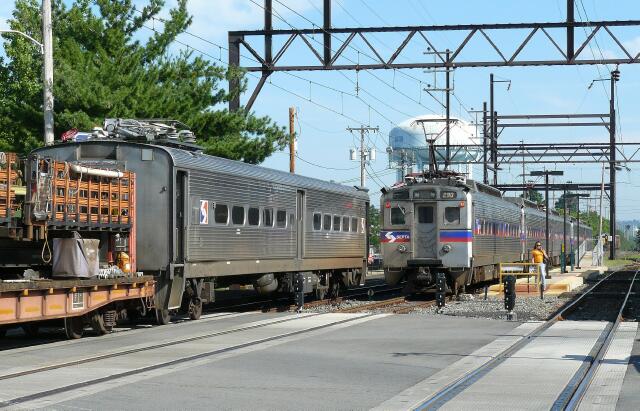 | One late train made for some interesting railroading in Lansdale on Friday August 1. Seems that Train 6523 was having some problems with its pantograph at Doylestown. This caused the dispatcher to put Train 524 on the runner instead of in the MU yard ... |