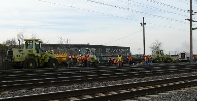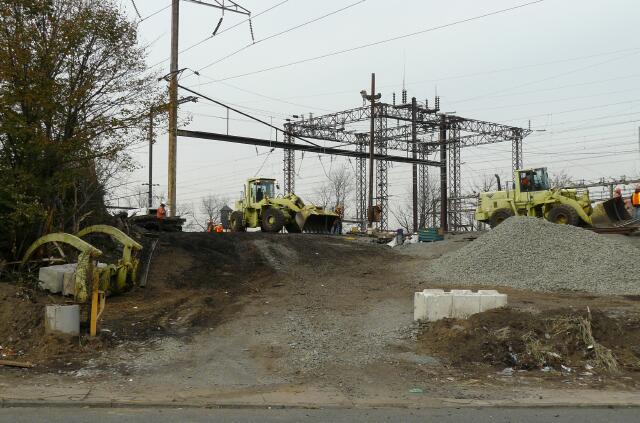 | Amtrak continues to make improvements and changes to the NEC. At Frankford Junction just before Thanksgiving, track department forces were working on the approach to the Delair Bridge. |