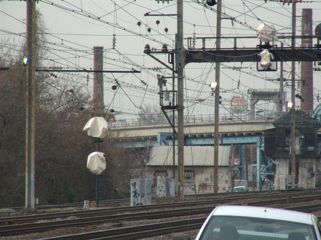 | Two of the casualties were the Shore Interlocking westbound signals for Track 1 and the NJT Delair Bridge approach track, as well as the last remnants of the Frankford Junction station platform. For a look at the Junction the way it was back in 1991, click here. |