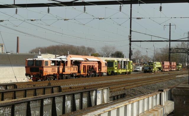| Meanwhile, the heavy MOW artillery sits down on Track 5 west of Shore Interlocking, waiting for its turn. |