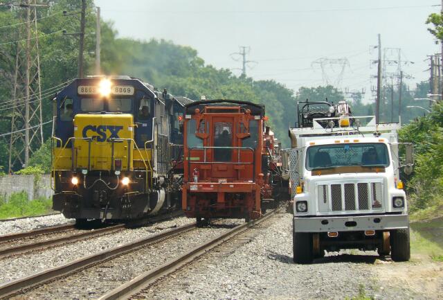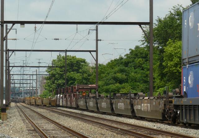 | Just after H25 departed Abrams Yard, CSX Q190 did the same but in a different direction, heading east across the Schuylkill River over to Norristown and the Morrisville Line. |