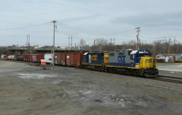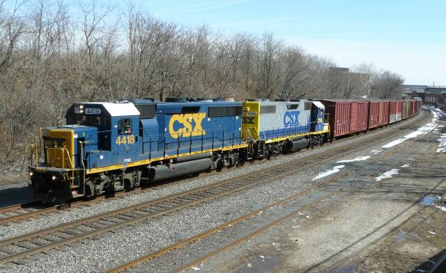 | March 5 2010 CSX B738 rolls through Bridgeport PA on NS Harrisburg Line heading for Abrams Yard and eventually the Stony Creek Branch. |