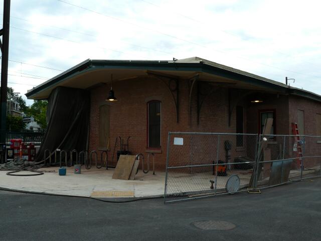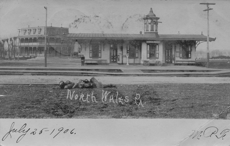 | North Wales Station is one of the oldest station buildings still in use on the SEPTA system. Built in 1873 by the North Pennsylvania Railroad, it originally featured a cupola (as seen from a postcard from the turn of the twentieth century). Sometime after the North Penn was absorbed by the Philadelphia and Reading Railroad in 1879, the station's brick exterior was painted cream with brown trim. For at least the last 100 plus years, the building has always worn a coat of paint, the latest courtesy of the last business to occupy the station. Part of the restoration of the building by SEPTA was to strip off the garish paint down to the bare brick in anticipation of repainting it in the cream and brown scheme of the Reading Company. |