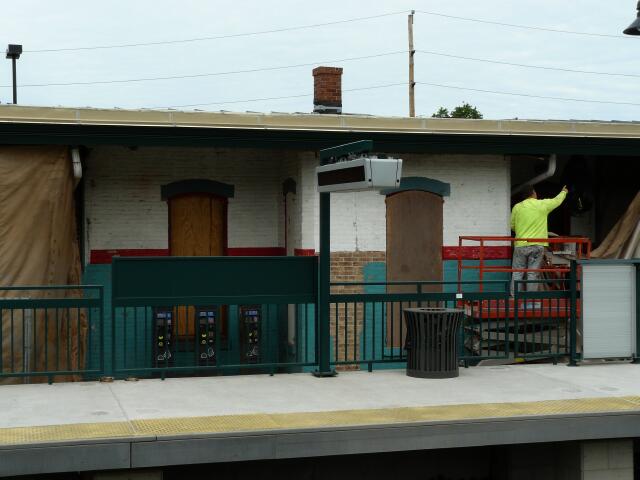 | Complicating matters is the fact that in repointing the brick as part of the restoration, a modern cement-based mortar was used instead of the original lime-based mortar, which if left exposed to the elements could ultimately destroy the facade. That coupled with the fact that the method of paint removal apparently destroyed the hard fire-skin of the bricks, which protected their softer core, may mean the eventual return of the cream and brown of 1906, if only to preserve the building's structural integrity. As of now, an agreement between the borough, the North Wales Historic Preservation District and SEPTA has the exterior brick being treated with a translucent sealer which should last 5-7 years, at which time the matter will be revisted. At least the station is still standing, and looking good. |