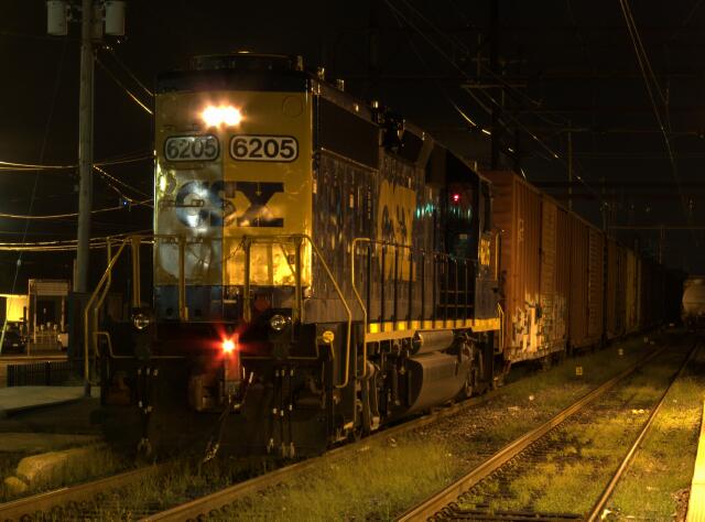 | Wednesday B738 returns late from yesterday's trip into the city, and newcomer to Lansdale CSX GP40-2 6205 sits at the station waiting to make a trip to Lansdale Warehouse on the Doylestown Branch while 2795 and 4418 work the Bethlehem Branch. |