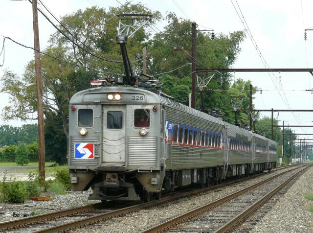 | The next morning, opportunities to catch the rest of the Silverliner family, starting with ex-Pennsylvania Silverliner II 253 leading three more Silverliner II's. |