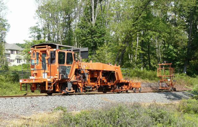 | The branch was taken out of service on Monday August 16 and by Tuesday both crossings had the existing asphalt removed by a Grad-All while a ballast regulator and a tamper stand by. |