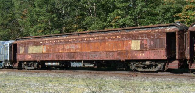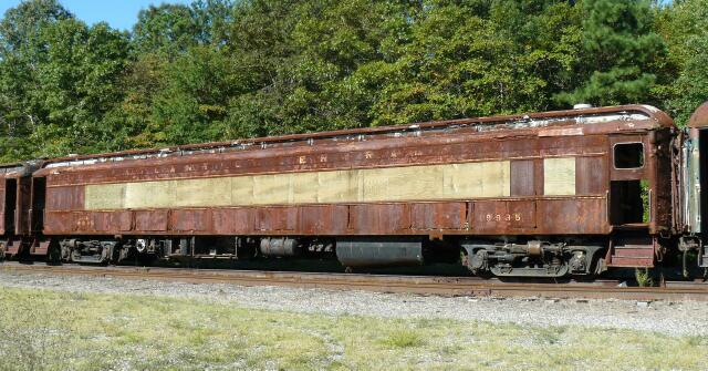 | Compared to the stainless steel above, these ex-PRSL cars 9887 and 9935, still wearing lettering from their previous owners Wilmington & Western and Atlantic Central, will require a much more extensive restoration if they are ever expected to roll again. |
