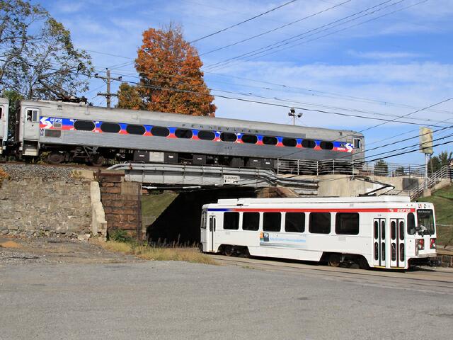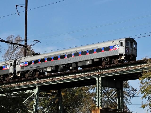 | The Friends of the Philadelphia Trolley sponsored a Farewell to Budd Silverliner II fan trip today using ex-Pennsylvania Railroad 269 and ex-Reading Company 9001. Joe Osciak sent a couple shots of 269 from early on the trip, the first an over-under at Clifton-Aldan .... |