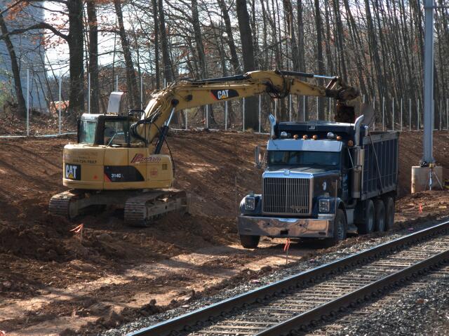 | the area is being graded and a fence erected along the south side of the tracks. |