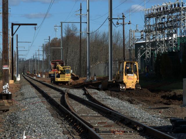 | By early the next morning, the Schoolhouse Road switch is already in, awaiting ballast ... |