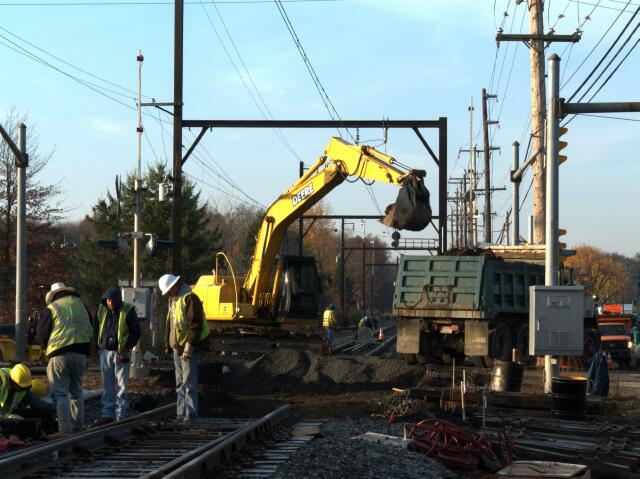 | Work continues on the new passing siding at Link Belt on the Doylestown Branch. Between revenue runs ... |
