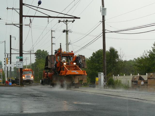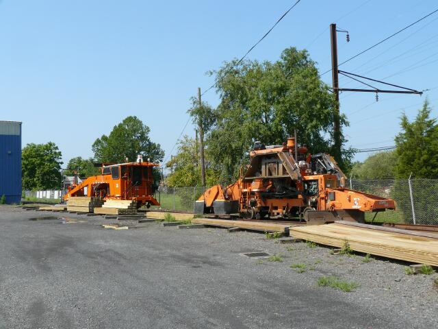 | There are only two customer sidings remaining on the branch, and SEPTA parked a ballast regulator and a tamper on the northernmost siding at 84 Lumber which is adjacent to the Route 202 grade crossing. |