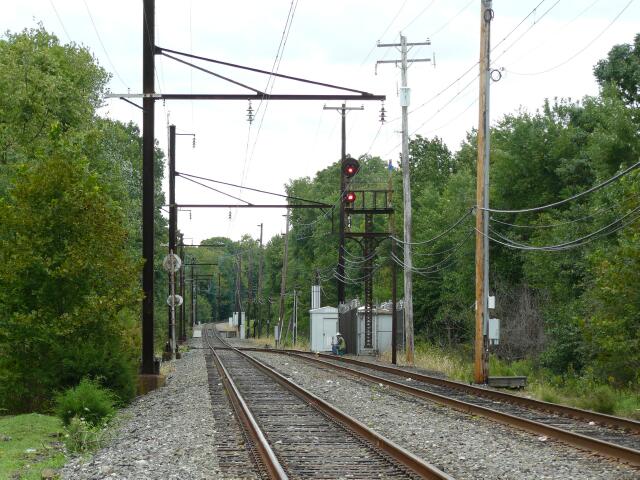 | On Sunday August 28 2011 SEPTA C&S department cut in the new signals on the Doylestown Branch. The cab signalling runs from Land to here at School where a temporary wayside signal has been installed to denote the shift from the new to the old .... |