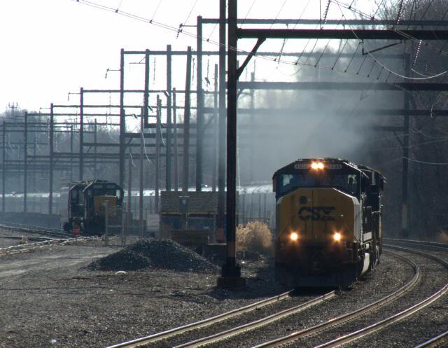 | After finishing its work, Q418 continued east with CSX CW44AC 5104 teamed up with CSX CW44AC 561. |