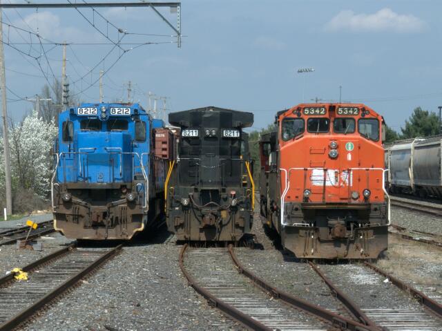 | As for the engines, a lineup of the likely suspects (CSX had departed the scene overnight). |