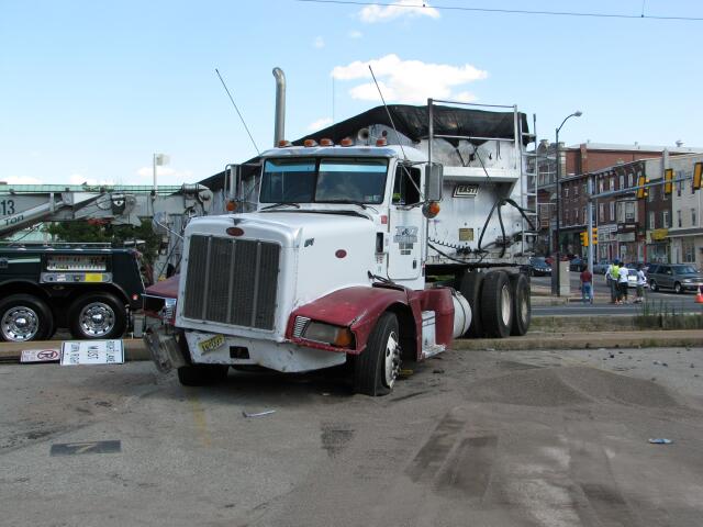 | The brakes apparently failed on this truck hauling municipal waste, and the safest thing for the driver to do when approaching the busy intersection of DeKalb Pike and Main Street was to turn toward the commuter parking lot at the station. |